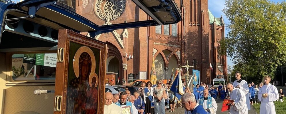 Ostatniego dnia nawiedzenia, w poniedziałek 8 września, kiedy Kościół celebrował święto Narodzenia NMP, nasza wspólnota dziękowała za dar Maryi dla całego Kościoła, a w sposób szczególny za ten wyjątkowy czas nawiedzenia naszej parafii obrazu Matki Bożej Częstochowskiej. Kiedy wybiła godzina 16.00, zgromadziliśmy się licznie na Mszy świętej, aby podziękować i pożegnać naszą Matkę i Królową. Choć odczuwaliśmy smutek i żal, że ten czas nawiedzenia tak szybko minął, to jednocześnie byliśmy wzruszeni i pełni wdzięczności, że Maryja przybyła do naszej parafii i spojrzała na nas i nasze życie swoim pełnym miłości spojrzeniem. Po zakończonej Eucharystii i pożegnaniu w bazylice obrazu Matki Bożej przez ks. proboszcza Mirosława Sołtyska i przedstawicieli parafii, wizerunek Pani Jasnogórskiej został przeniesiony w procesji do samochodu-kaplicy i przez kustosza obrazu o. Józefa, naszego ks. proboszcza oraz przedstawicieli parafii przewieziony do kolejnej parafii pw. NSPJ w Dąbrowie Górniczej – Strzemieszycach Wielkich.